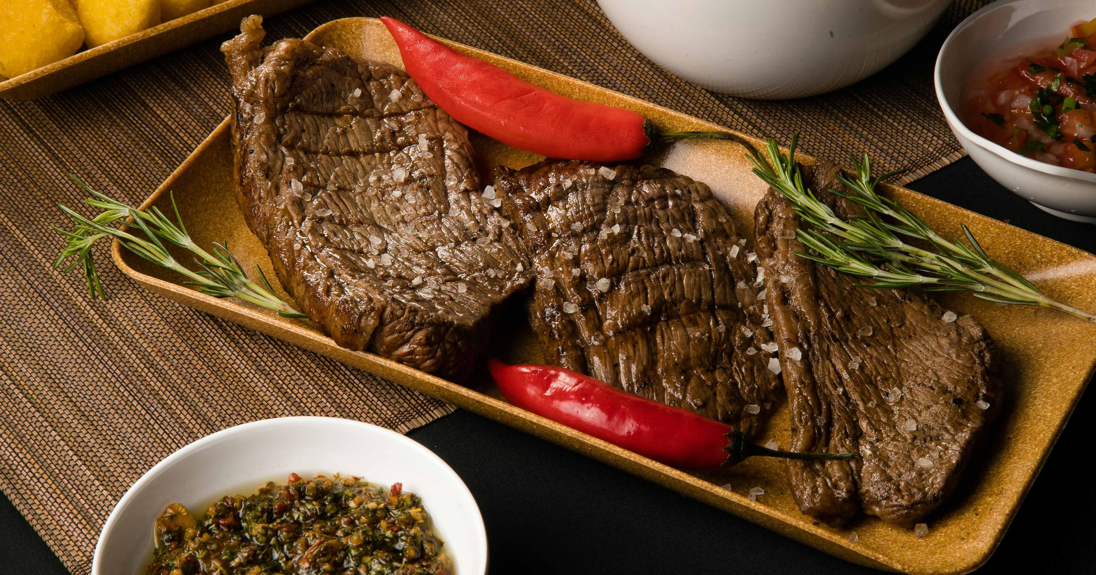 Aproximadamente 500 gramas in natura (pesada antes de assar) de uma suculenta Picanha (tapa de cuadril argentina) assada na exclusiva parrilla da El Cardal apenas com Sal de Parrilla.